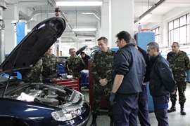 Tras dichas reuniones se visitó la Unidad de Automóviles en el Acuartelamiento “Conde de Humanes”, en el que el JEME. mostró interés por el segundo y tercer escalón de mantenimiento de vehículos y por la asignación de conductores.