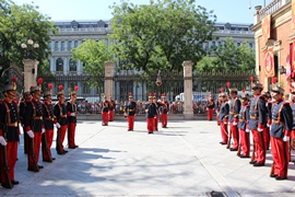 El Relevo de la Guardia del Palacio de Buenavista del mes de Junio se celebró el pasado día 26, como manda la tradición, por ser el último viernes del mes y con la uniformidad de Alfonso XII como correspondía. En esta ocasión estuvo presidido por el Jefe de la Dirección de Acuartelamiento, General de División, Excmo. Sr. D. Enrique Bohigas Jayme, al que acompañaron otros mandos pertenecientes a la Dirección de Acuartelamiento, que se encuentra ubicada en el Palacio de los Consejos de Madrid.