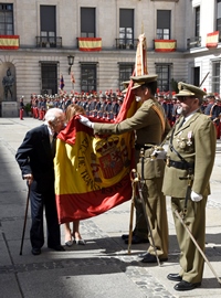 Durante la parada militar, el Suboficial Mayor del Ejército, D. Antonio Blanco Gutiérrez, refrendó su juramento a la Bandera al haber pasado a la reserva el pasado 14 de junio tras casi 40 años de servicio al Ejército y a España, siendo relevado en el cargo por el Suboficial Mayor D. Francisco Coloma Guijarro.