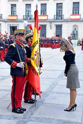 El pasado día 14 de mayo, el Regimiento de Infantería “Inmemorial del Rey” nº 1 se engalanó como las ocasiones señaladas requieren, para refrendar y ser testigo directo del compromiso de más de 300 mujeres y hombres que quisieron sellar, con un beso a la Bandera del Regimiento y a la de la Agrupación de Infantería de Marina de Madrid (AGRUMAD), su compromiso con la nación para guardar la Constitución con lealtad a su Majestad el Rey entregando si así fuese necesario su vida por defender España. A pesar de la presencia de una tímida lluvia que hizo que todos los asistentes tuvieran clavada su vista en el cielo, esta respetó finalmente el desarrollo de la jura que puedo realizarse con todo su esplendor y solemnidad.