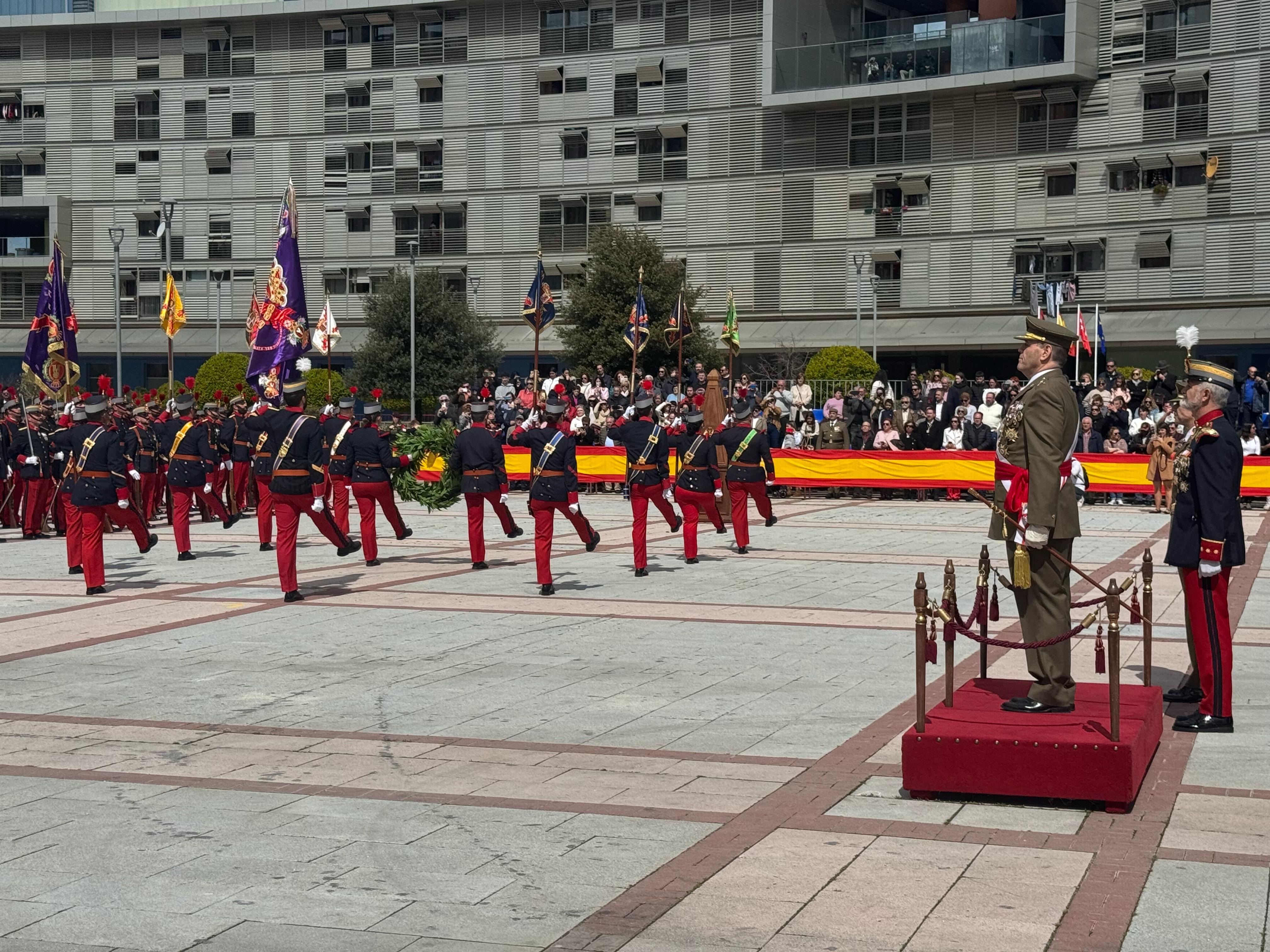 Tras el juramento a la Bandera, el coronel Pedro Javier Bello Acevedo, Jefe del Regimiento de Infantería ‘Inmemorial del Rey’, dirigió una alocución a los asistentes agradeciéndoles el juramento para con la patria que acababan de realizar y trasladando el orgullo que para el Regimiento supone haber sido testigos de su compromiso.
