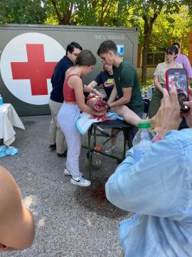 Control del sangrado Impartido por el Centro Naemt del Campus para la Seguridad y Defensa que desarrolla el experto universitario de: Sanitario de Combate en Operaciones en colaboración del Ejercito de Tierra. En esta actividad se cuenta con la mejor simulación clínica de trauma en combate, proporcionada por la empresa Medical Simulator, que pone a disposición de los visitantes el simulador de trauma avanzado en combate para TCCCC.