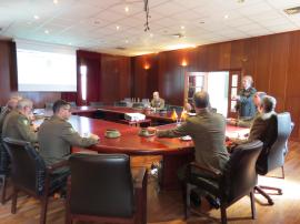 Después de serle rendidos los honores de ordenanza y saludar a los jefes de sección que le esperaban a su llegada, la coronel Marcos López Jefe de la Unidad, acompañó a la Autoridad a la Sala de Reuniones, dónde realizó una presentación pormenorizada de los aspectos más relevantes de la UALSAN, así como diversos datos de gestión, para facilitar la formación de una idea concreta de la misma, con sus principales puntos relativos al funcionamiento, gestión y distribución de los recursos sanitarios disponibles, finalizando la misma con un café de trabajo.