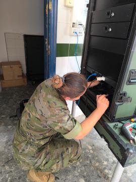 Con objetivo de extender la telemedicina estratégica a la zona de operaciones para uso táctico, el equipo de telemedicina de la UALSAN, formado por el Stte. ELECT D. Fernando López Malpartida y la Cb. MAET Dña. Ángela Rocío Bueno Poloche con el apoyo de personal civil de la empresa suministradora
