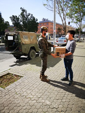 Del mismo modo, Una sección de la 2ª Compañía de la UTMAAA ha desarrollado estas labores durante los días 26, y 28 de marzo en la Ciudad de Sevilla, habiendo recibido muestras de cariño por parte de la población, entre las que cabe destacar la donación de mascarillas de protección por parte de un ciudadano Chino al personal de la Compañía.