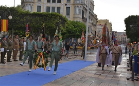 Estos actos, presididos por el Comandante General de Melilla Luis Sáez Rocandio, se desarrollaron el pasado sábado día 28 de mayo, en la Plaza de España, comenzando con el Solemne Acto de Arriado de Bandera, donde recibió los máximos honores, Himno Nacional y una salva de 21 cañonazos.