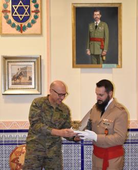 Como no podía ser de otra manera, el cabo Navarro Morales fue despedido en la Sala Histórica de la Unidad, donde estuvo arropado por una representación de cuadros de mando y personal de tropa del Grupo. Tras la despedida del Guion de la Unidad, y unas palabras de agradecimiento del jefe del Tabor “Alhucemas” I/52 y del jefe del Grupo, se le entregaron unos obsequios en agradecimiento por sus años de servicio a España en las Fuerzas Regulares y en reconocimiento a toda una vida dedicada al deber, honor y espíritu Regular.