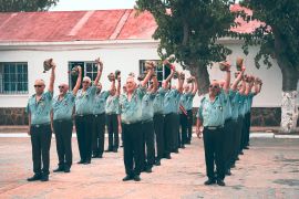 Los veteranos formaron, como una unidad tipo compañía más, al lado del resto de unidades en formación, participando en todos los aspectos de la parada militar, como si estuvieran todavía en activo. Tras el desfile, fueron felicitados por el Comandante General. A continuación, en el comedor del acuartelamiento tuvo lugar un vino de hermandad, donde nuevamente veteranos y jóvenes pudieron disfrutar de un ambiente sano y festivo, lleno de sensaciones y emociones.