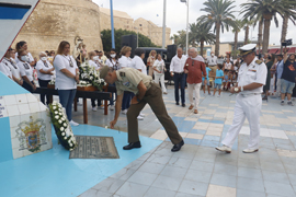 El pasado 14 de julio tuvo lugar la ofrenda floral en la Plaza de los Pescadores, precedida por una misa en la iglesia Castrense y una pequeña procesión desde esta hasta el lugar de la ofrenda donde las Damas del Carmen portaron la imagen de la Virgen del Carmen de la Compañía de Mar.