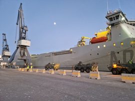 Durante la jornada del 2 de noviembre, personal de la Terminal Marítima de la Compañía de Mar de la Unidad Logística 24 (ULOG 24) llevó a cabo el embarque de vehículos y material en el buque de transporte “El Camino Español”.