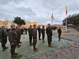 Se procedió a la entrega de felicitaciones del Mando de Canarias (MCANA) y la entrega de militar ejemplar, por su dedicación, esfuerzo, constante entrega y fiel reflejo de un profesional de la logística al cabo 1º Miranda de la Compañía Técnica de Mantenimiento.