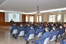 Esta visita constó de dos partes, la primera, una serie de conferencias impartidas por Oficiales referentes a los sistemas NASAMS, PATRIOT y 35/90 para, posteriormente, continuar con la exposición de material de estos sistemas de misiles antiaéreos con los que cuenta el Ejército de Tierra español.