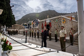 El Regimiento de Artillería Antiaérea ha organizado un sencillo acto en el Panteón Militar del Cementerio cartagenero de Nuestra Señora de los Remedios para honrar a aquellos que, formando parte de los ejércitos en todas las épocas y lugares, ofrecieron su vida por España. El acto fue presidido por su Coronel Jefe y Comandante Militar de Murcia, D. Carlos Quijano Barroso, en conmemoración del Día de los Caídos por la Patria que se celebra oficialmente en España el 2 de noviembre.