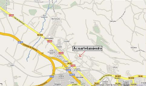 tomaremos la salida Pamplona-Berriozar, a continuación la salida San Sebastián-Berriozar, llegando a la rotonda de acceso al cuartel.