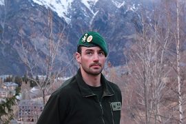 ''Escuché el himno de los Cazadores de Montaña muchas veces cuando era pequeño”, cuenta el teniente Jayme (Jaca, 1987). Su padre también era militar y él ha seguido sus pasos. Ingresó en la Academia General Militar de Zaragoza y después de tres años marchó a la de Toledo, donde cursó dos años más. Esquía desde niño y es aficionado a la montaña. El América 66 fue su destino.