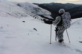 Tras haber realizado la fase más técnica de la instrucción invernal en montaña, las unidades del BIMT “Montejurra” I/66 que mantienen la capacidad de vida y movimiento en dicho medio (3ª Cía. especializada en montaña, SERECO y personal del Pn de Transmisiones), han desarrollado del 13 al 17 de marzo de 2017 el ejercicio ALFA, AHOLO III/17, en el pirineo navarro-aragonés.