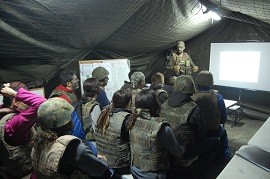 El ritmo de trabajo fue frenético de principio hasta el final. Se comenzó con instrucción de CZZUU a nivel individual y binomio, continuando con tareas de pelotón/sección. También se realizaron prácticas de recuperación e identificación de personal propio, custodia y conducción de prisioneros de guerra y tratamiento de hemorragias y neumotórax con síndrome de aplastamiento por onda de choque.