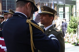 Durante el desarrollo del acto se impusieron diversas condecoraciones concedidas a personal militar español por su participación en operaciones en el exterior. Por primera vez fueron recompensados militares españoles de los desplegados en Irak durante 2017. En concreto, al Tte. De Carlos y a los Sargentos Vanegas y Pérez, del Regimiento « América » y participantes en el contingente BPC VI, les fue impuesta la Orden de la Defensa Nacional francesa, en reconocimiento al desempeño de sus cometidos como equipo de entrenamiento destacado junto a las fuerzas francesas de la coalición.