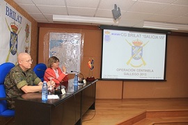 La consejera de Medio Rural y del Mar, Rosa Quintana, y el jefe de la BRILAT, general Luis Cebrián, comparecieron ante los medios de comunicación para explicar el dispositivo militar que colaborará con la Xunta de Galicia en la prevención de incendios forestales.