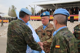 El general Del Col ha entregado la Bandera de Naciones Unidas al General Jefe del nuevo contingente. Tras la transferencia de autoridad, el Force Commander, ha destacado el magnífico trabajo realizado por la BRILIB XXIX para conseguir los objetivos establecidos por Naciones Unidas así como su integración con la población civil.