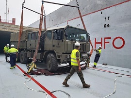 Un total de 20 vehículos de ruedas en sus diferentes versiones, 4 piezas de artillería remolcada y 10 contenedores de carga embarcaron el 20 de agosto en el puerto de Vigo con dirección al puerto de Izmir, Turquía. Desde este puerto, todo el material se desplazó hasta el área de entrenamiento de Acikir en la localidad de Polatli, a las afueras de Ankara.