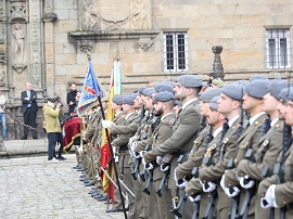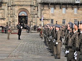 La Compañía de Honores del Regimiento Isabel la Católica 29 de la Brigada Galicia VII participó el pasado 30 de diciembre en la tradicional parada militar que se celebra en la Plaza del Obradoiro con motivo de la traslación de los restos mortales del Apóstol Santiago y posterior Ofrenda Nacional.