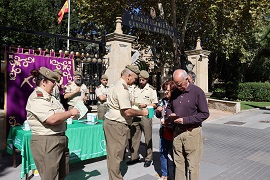 Al igual que en años anteriores, el pasado 13 de septiembre tuvo lugar en la puerta principal del Acuartelamiento “General Arroquia” de Salamanca, una cuestación en beneficio de la Asociación Española Contra el Cáncer (AECC). Durante la mañana se instaló una mesa petitoria que fue atendida, voluntariamente, por miltiares del Cuartel General del Mando de Ingenieros, del Regimiento de Especialidades de Ingenieros N.º 11, de la Unidad de Servicios General Arroquia y del Centro de Comunicacion T-4170; Unidades ubicadas en el Acuartelamiento.