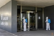 El REI N.º 11 ha iniciado los trabajos de desinfección de edificios institucionales y de uso público de la ciudad de Salamanca. Una vez más esta Unidad ha sido designada para una nueva misión dentro del ámbito de la Operación Balmis.