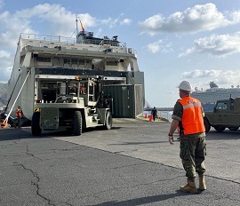 Destaca el trabajo de las unidades terminales marítimas de Tenerife y de Las Palmas de Gran Canaria, pertenecientes al GALOG I/81, que se encargan de la coordinación y control de los embarques y desembarques de material establecido en los manifiestos de carga.