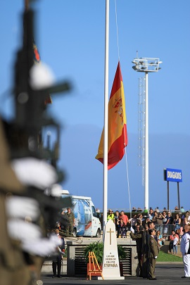 Por último y como colofón de los actos programados, la Villa de Los Realejos ha sido escenario en la mañana de hoy de la Jura de Bandera para personal civil, en la cual cerca de 200 españoles han manifestado su compromiso con la defensa de España, prestando el juramento o promesa ante la Enseña Nacional, presidida por el general jefe del Mando de Canarias Pedro Galán, ha contado con la asistencia de numeroso público y diversas autoridades de Tenerife.