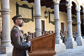 Comenzó su alocución resaltando el orgullo y la satisfacción que significa para un segoviano como él hacerse cargo del Departamento de Instrucción y Adiestramiento, especialmente por volver al arma y a su cuna, y la gran responsabilidad y el reto apasionante que supone contribuir a proporcionar a las Fuerzas Armadas cuadros de mando de calidad.