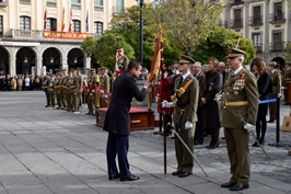 Un año más, con motivo de la festividad de Santa Bárbara, el viernes 4 de diciembre, la Academia de Artillería celebró su patrona con los ciudadanos de Segovia en la Plaza Mayor. Bajo un sol espléndido, el Coronel Director de la Academia de Artillería, Ilmo. Sr. D. Javier Alonso Bermejo recibió al Teniente General Jefe del Mando de Adiestramiento y Doctrina, Excmo. Sr. D. José Carrasco Gabaldón, quien presidió el acto acompañado de las máximas autoridades militares y civiles de la provincia. A las 12:30 tuvo lugar la recepción de ordenanza al Teniente General, quién pasó revista a la formación. A continuación intervino la Alcaldesa de Segovia, Dña. Clara Luquero de Nicolás, quién subrayó la numerosa participación de ciudadanos civiles en la Jura de Bandera convocada, hecho que simboliza la unión y el compromiso de todos al servicio de España y el respeto de los valores democráticos y de convivencia. Una vez finalizado su discurso, comenzó la ceremonia de la Jura. Este año difundida a través de las redes sociales y que ha conseguido atraer a 165 hombres y mujeres de toda España, con una amplia participación de jóvenes. Entre los participantes destacó la presencia de la concejala Dña. María Josefa García Orejana, el historiador segoviano, D. Fernando de los Reyes o el periodista D. Juan Alfonso Merlos García. Finalizada la jura, se procedió a la imposición de condecoraciones y se entregó el título de Artillero de Honor, distinción otorgada a personas u organismos como reconocimiento a la contribución en la difusión de los fines y actividades de la Academia. Este año la distinción recayó, en primer lugar, la Institución Campus Maria Zambrano de la Universidad de Valladolid, por la labor de difusión de la actividad artillera en diferentes proyectos comunes. El galardón fue recogido por el vicerrector, D. Juan José Garcillán. También fue distinguido D. José María Calzada González, coordinador del núcleo de formación profesional de la Academia de Artillería en representación del cuadro de profesores de este núcleo, por el trabajo realizado en la formación de los suboficiales, homologando el título de técnico superior. Después, el Coronel Director dirigió unas palabras a los asistentes, en las que destacó su satisfacción por la respuesta ante la Jura de Bandera. El Coronel resaltó que “…con el juramento se ratifica y proclama que amamos profundamente a nuestra Patria. Entendemos que el concepto de Patria está vivo, porque ese concepto no es más que el hacer común de todos los españoles y en razón de ello asumimos su historia, y trabajamos por su presente con la esperanza de un futuro siempre mejor” La ceremonia concluyó con un homenaje a los que dieron su vida por España, la entonación del himno de los artilleros y el desfile de las unidades. A lo largo de toda la semana se llevaron a cabo diversas actividades en honor a Santa Bárbara, destacando la tradicional “callada” con asistencia de un gran número de veteranos, a lo largo de la cual tiene lugar un diálogo rimado que inicia el Coronel Director y a quien replican los versos de los alumnos de todos los cursos. También se llevó a cabo la visita institucional al artillero más antiguo, el General de Brigada, Excmo. Sr. D. Ricardo Sotomayor y Muro; y también las competiciones deportivas, con la novedad este año de la celebración de las primeras miniolimpiadas.