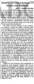 La Academia de Artillería desea retomar las relaciones con Niebla, de forma que la Academia visite cada año la ciudad onubense, con ocasión de la visita al RAAA-74 de Dos Hermanas (Sevilla).