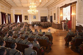 El nuevo Jefe de Estudios en su discurso, analizó brevemente la primera lección impartida por el padre Eximeno; resaltando que “en el servicio de la artillería, debe combinarse adecuadamente, el estudio de la teoría y la práctica”. Asimismo destacó que la formación que van a recibir los alumnos de la Academia de Artillería “deberá proporcionar cuadros de mando que sean útiles para el proyecto de mayor envergadura que ha emprendido el Ejército de Tierra para poder disponer en el horizonte temporal 2035 de unas fuerzas terrestres tecnológicamente avanzadas, dotadas de las capacidades necesarias para operar eficazmente en entornos operativos caracterizados por su dinamismo, inestabilidad y creciente complejidad”.