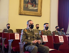 Los alumnos pudieron seguir la conferencia desde el Salón de Actos de la Academia de Artillería, manteniendo de forma estricta las medidas higiénico-sanitarias motivadas por la pandemia del Covid-19.