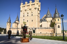 En la renovada plazuela de la Reina Victoria Eugenia del Alcázar de Segovia, como cada año, el 2 de mayo la Academia de Artillería ha rendido homenaje a dos de sus más ilustres artilleros: los capitanes Daoiz y Velarde, muertos heroicamente el día dos de mayo de 1808.