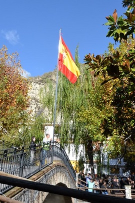 La ceremonia, a la que asistieron los vecinos de la localidad y tras dar novedades al teniente general, comenzó con unas palabras del alcalde del cabildo dirigidas a sus conciudadanos. A continuación se efectuó el solemne izado de la bandera, cuyo mástil se encuentra situado en uno de los puentes de la cuidad que cruzan el río.
