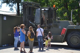 Numerosos sevillanos y sevillanas en su visita a la exposición disfrutaron y conocieron la Unidad. Por una parte pudieron aprender su historia a través de una muestra fotográfica y el visionado de un video. Por otra, recorrer una exposición estática representativa del trabajo de abastecimiento, mantenimiento, transporte y de personal, ubicada en el patio de armas del Acuartelamiento.