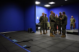 El coronel Rebollo Martínez, jefe de la Agrupación, tras la recepción y una vez realizados los honores de ordenanza, expuso al general Freire en una presentación los sistemas y medios de apoyo a la instrucción, adiestramiento y evaluación que utiliza la unidad, así como su aplicación, para posteriormente visitar el simulador VITRIX, el gimnasio del acuartelamiento y demás zonas destinadas al asunto principal de la visita.