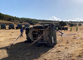 Por último, se realizaron prácticas de recuperación y puesta en servicio de un vehículo volcado sobre el costado, con el objetivo de su progresión en misión.