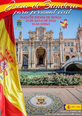 El Cuartel General de la Fuerza Terrestre organiza el próximo día 21 de mayo a las 10:30 horas una Jura de Bandera para personal civil en la Plaza de España de Sevilla.