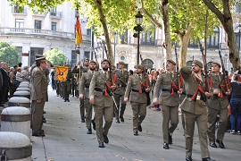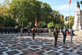 En la Plaza Nueva de Sevilla, organizado por el CGFT y con participación de los tres Ejércitos, la Guardia Civil y la UME, se ha llevado a cabo un sencillo acto de izado de la Enseña Nacional y un homenaje a los caídos por España, en el marco de los actos con motivo de la Fiesta nacional.