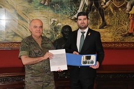 Tras finalizar la visita, los componentes de este Cuartel General y los integrantes de la visita compartieron un café y se obsequió a la Hermandad malagueña con un detalle para recordar su participación en el izado de nuestra Bandera y su estancia entre nosotros.