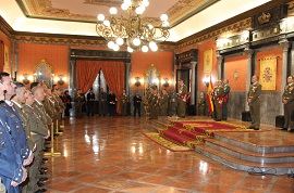 Posteriormente, las autoridades civiles y militares se trasladaron al Salón del Trono de la Capitanía General donde tuvo lugar la Recepción Oficial, en la que se dio lectura a la efeméride que instaura esta conmemoración, tuvo lugar una imposición de condecoraciones y finalizó con la alocución del teniente general.