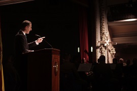 Con el patio de butacas lleno, tras ser presentado por el también periodista Víctor Castaño, el pregonero regaló a los presentes un rosario de momentos cofrades de las Hermandades sevillanas por las calles de nuestra ciudad.