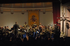 No faltaron a esta cita ni las saetas de los saeteros Alex Ortiz y de Paquita Gómez, ni las marchas procesionales interpretadas por la Unidad de Música del Cuartel General de la Fuerza Terrestre.