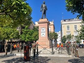 El Regimiento de Artillería antiaérea nº 74 realiza la tradicional parada militar, en homenaje a los héroes de la independencia española, en la plaza de la Gavidia de Sevilla, donde se erige el emblemático monumento al héroe sevillano del 2 de Mayo de 1808, el Capitán LUIS DAOIZ y TORRES.
