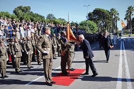 El acto militar se inició con el izado de la Enseña Nacional, al que siguió la jura del personal civil y un homenaje a los caídos por España, finalizando con el desfile de la fuerza por la Avd. Alcalde Álvaro Domecq.