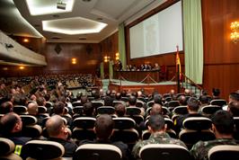 Posteriormente y ya en el Aula Magna, se hizo entrega de los diplomas a los participantes en el curso. La alocución del Tg Jefe de la UME y el Himno de esta Unidad dieron paso al acto Social en el que se entregaron las distinciones del CBE II/14.