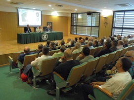 La conferencia se inició haciendo referencia a la presencia internacional de nuestro Ejército, tanto en relación con la Seguridad Nacional, como con los riesgos y amenazas en un mundo globalizado. Todo ello porque tal presencia internacional, fue el motivo fundamental de la creación de la práctica totalidad de las Unidades emplazadas en Valencia, tales como el Cuartel General de la OTAN, la Brigada de Transmisiones, el Regimiento de Inteligencia o el Batallón CIMIC, entre otras. En esta misma línea, citaba el General Comas, las necesidades derivadas de las operaciones han traído nuevos materiales tales como los Misiles PATRIOT, los Vehículos Aéreos no tripulados UAV,s, etc.; y la nueva concepción de la seguridad ha llevado a la creación de unidades muy singulares tales como el Batallón de Policía Militar o la Unidad Militar de Emergencias (UME), por ejemplo, ambas con un batallón en Valencia.